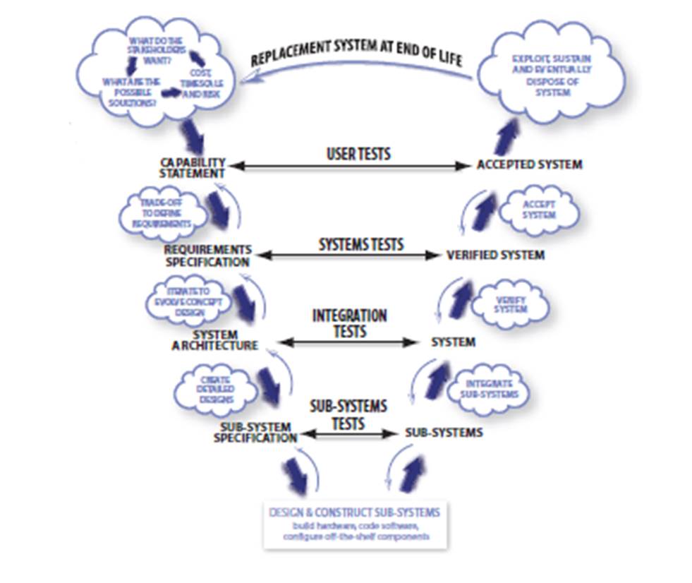 The ‘V-Diagram’ illustrates this core systems engineering process. The left side of V-Diagram illustrates the ‘chunking’ stages and the right side the ‘integration’ stages. All systems engineering methods support the implementation of the steps illustrated in the V-Diagram.